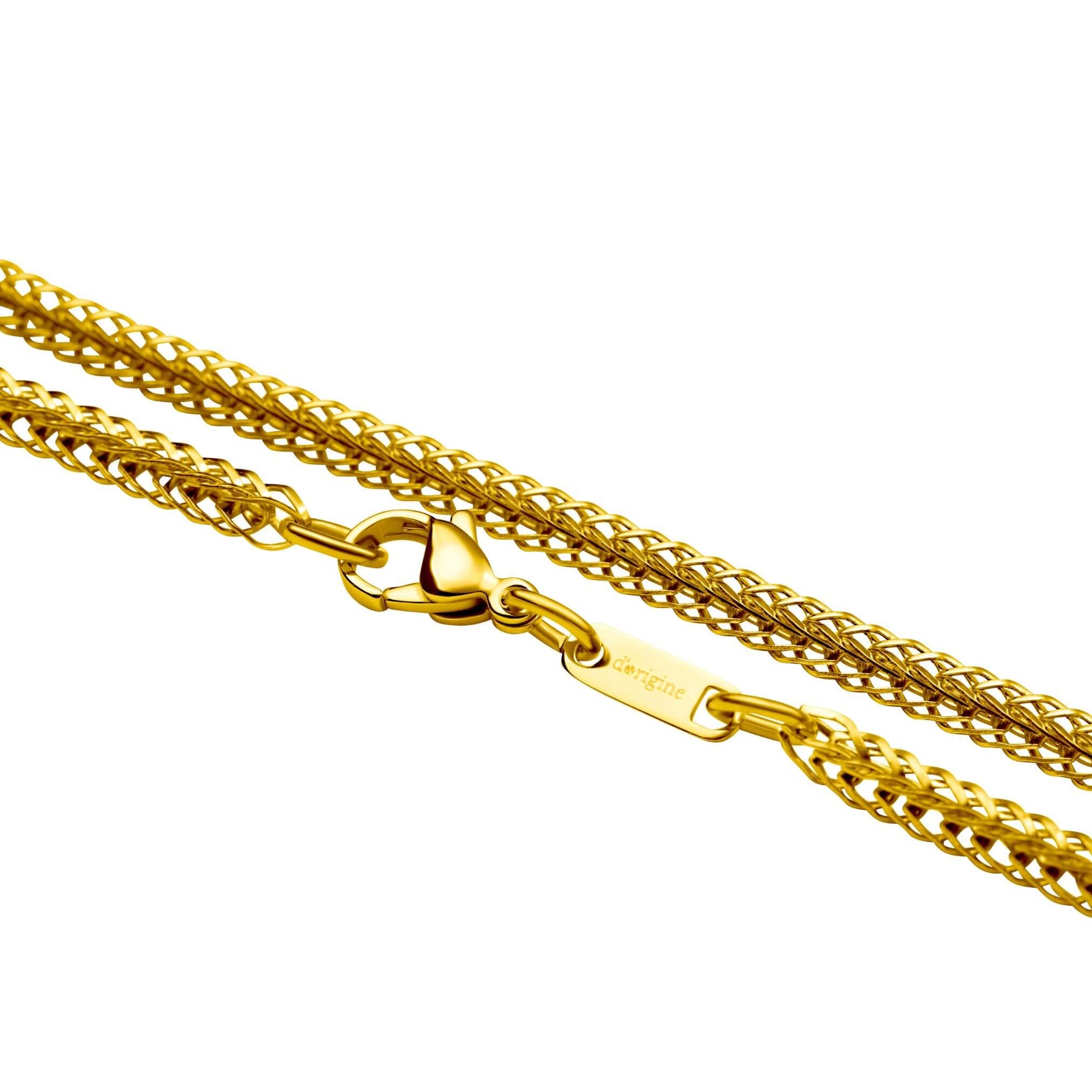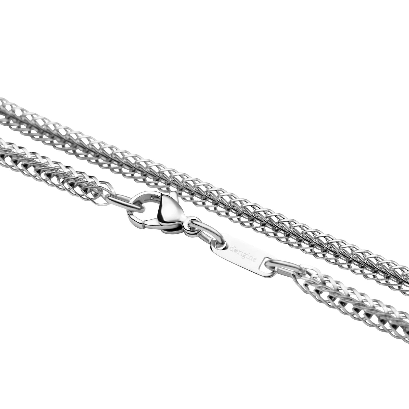The chain looks great worn on its own but also pairs perfectly as a second chain with our V2 crest necklaces. The 3 mm thick Fox Chain easily fits through the pendant loop.