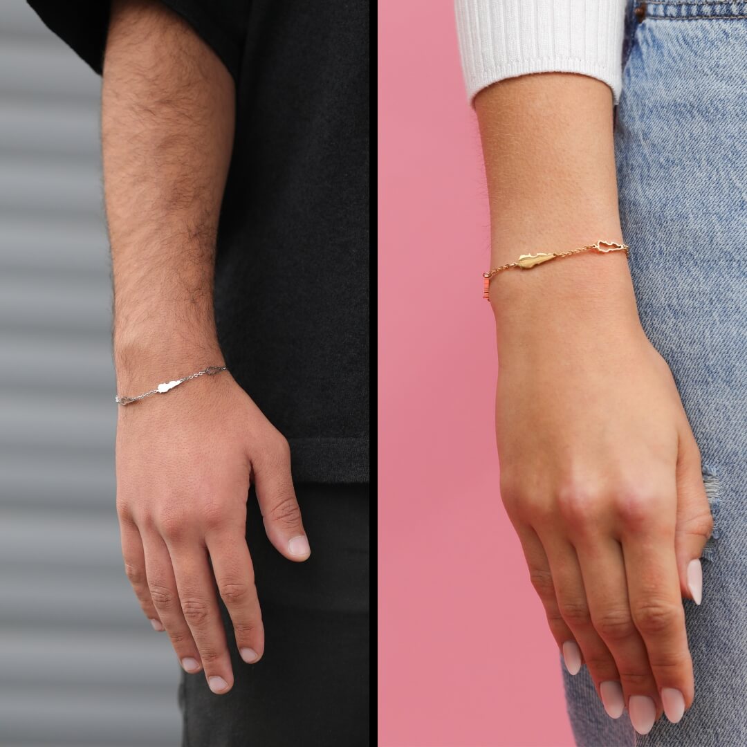 Unsere Landkarten Armbänder verleihen mit den drei Landkarten Anhängern dreifachen Charme und sind sowohl für Damen als auch Herren perfekt geeignet.
