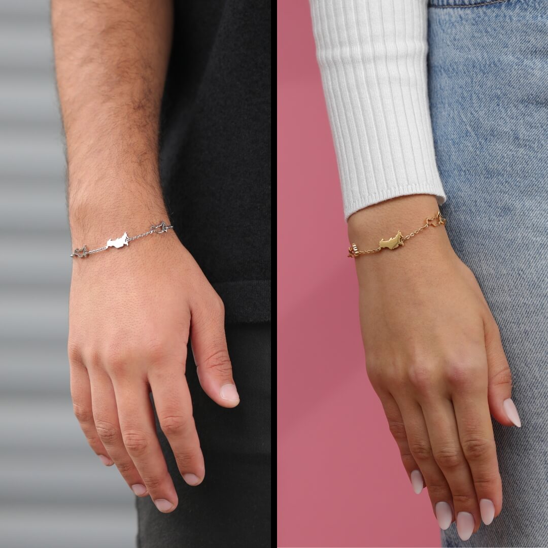 Unsere Landkarten Armbänder verleihen mit den drei Landkarten Anhängern dreifachen Charme und sind sowohl für Damen als auch Herren perfekt geeignet.