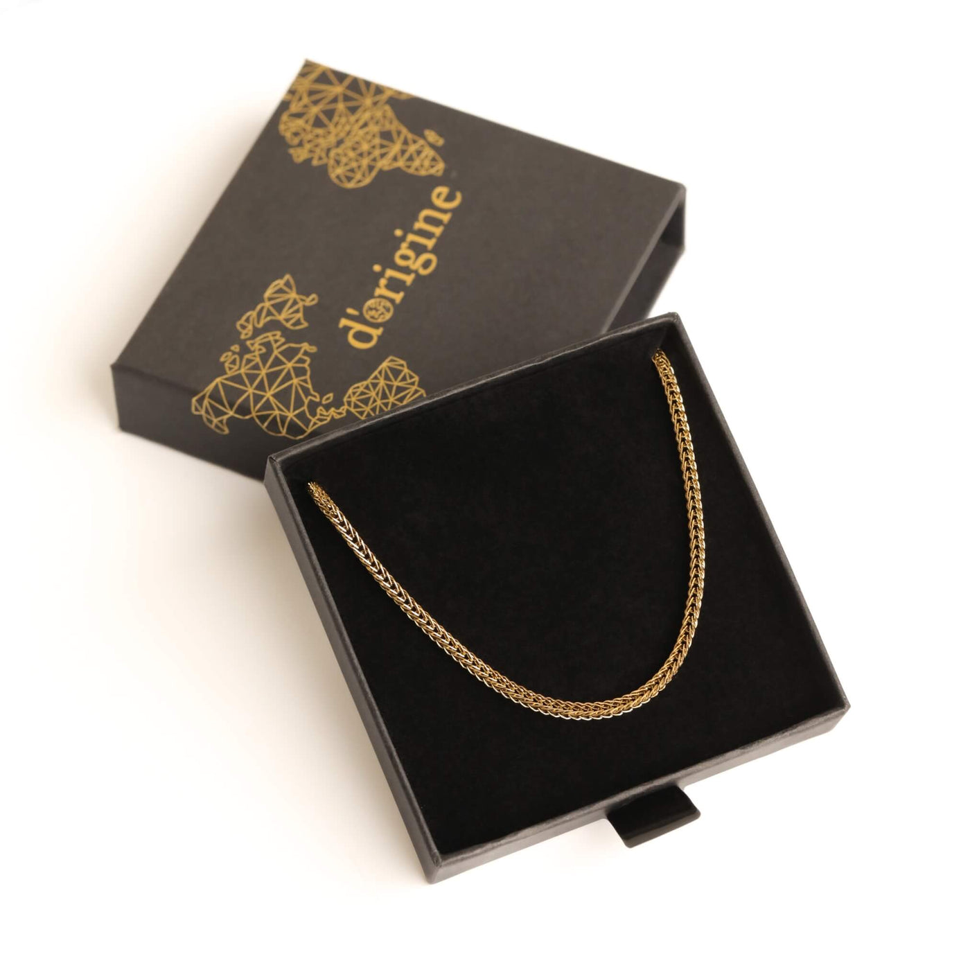 Unser Schmuck wird in edlen, goldverzierten Schmuckboxen und einem hochwertigen Versandkarton versendet – perfekt zum Verschenken.