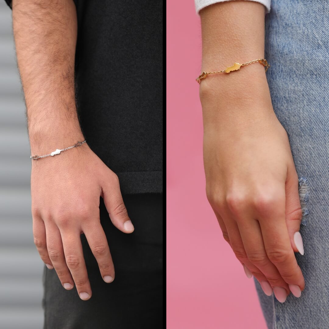 Unsere Landkarten Armbänder verleihen mit den drei Landkarten Anhängern dreifachen Charme und sind sowohl für Damen als auch Herren perfekt geeignet.