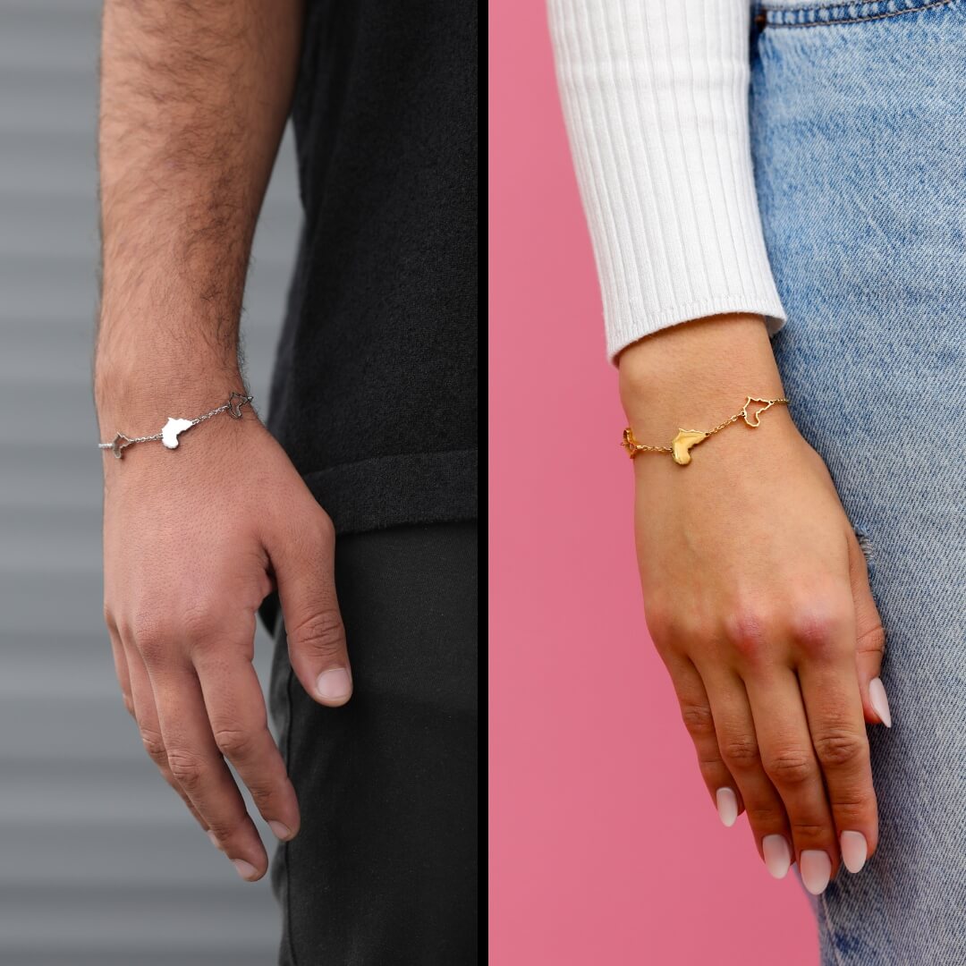 Unsere Landkarten Armbänder verleihen mit den drei Landkarten Anhängern dreifachen Charme und sind sowohl für Damen als auch Herren perfekt geeignet.