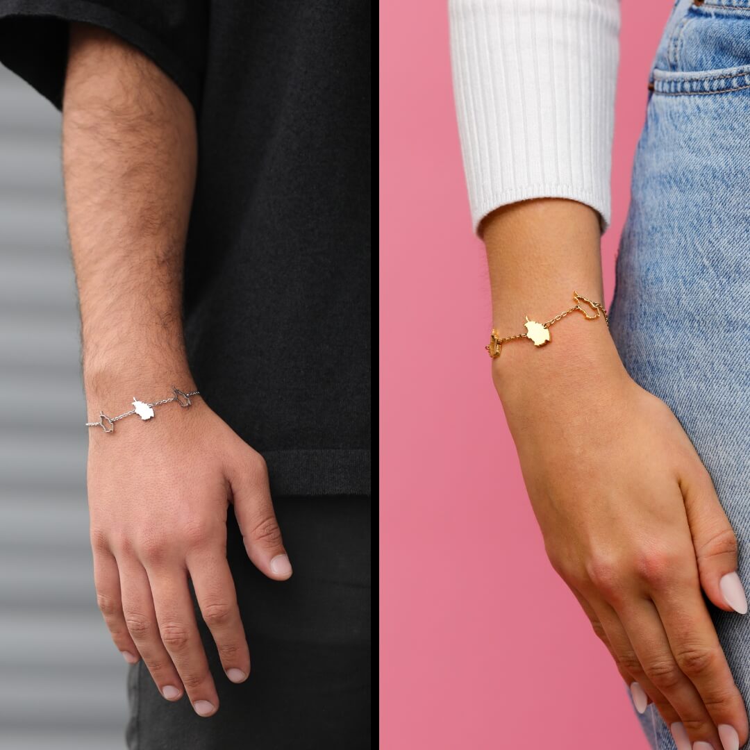 Unsere Landkarten Armbänder verleihen mit den drei Landkarten Anhängern dreifachen Charme und sind sowohl für Damen als auch Herren perfekt geeignet.
