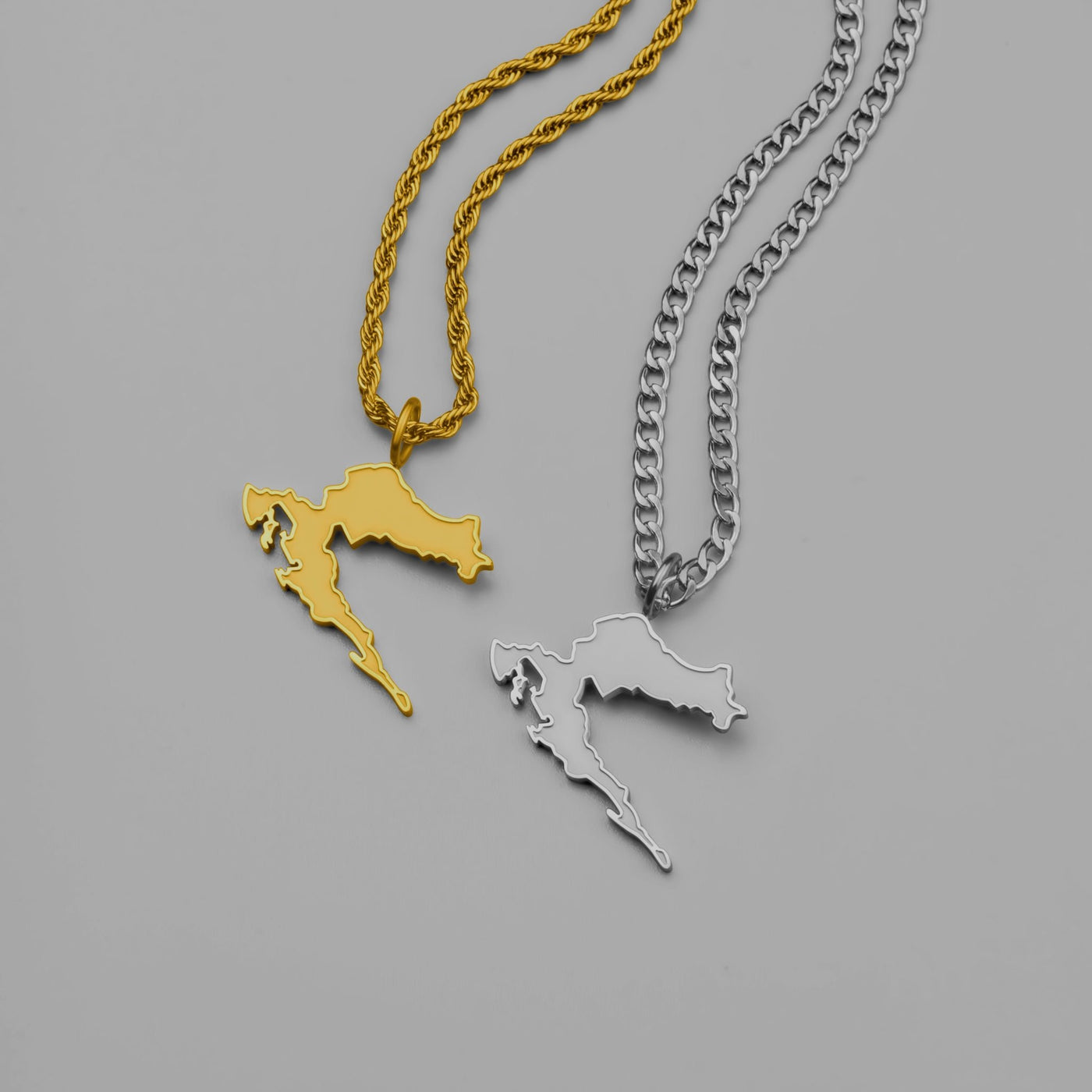 Die einzige Kroatien-Landkartenkette mit matt sandgestrahltem Anhänger und erhabener, glänzender Kontur. Od Vukovara do Dubrovnika – Hrvatska, jetzt sichtbar auf deiner Brust.