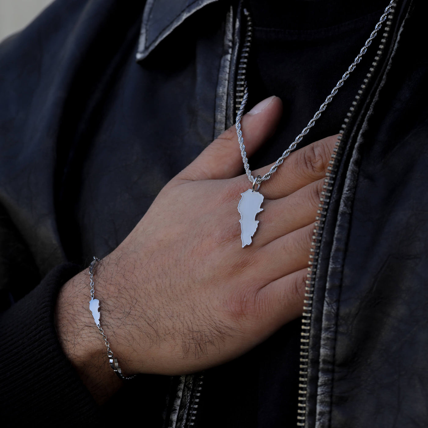 Die einzige Libanon-Landkartenkette mit matt sandgestrahltem Anhänger und erhabener, glänzender Kontur. لبنان – Libanon, die Heimat der Zedern, jetzt sichtbar auf deiner Brust.