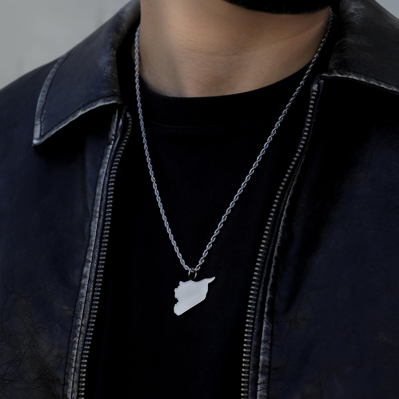 Die einzige Syrien-Landkartenkette mit matt sandgestrahltem Anhänger und erhabener, glänzender Kontur. سوريا – Suriya. بلاد الشام – Bilad ash-Sham. Jetzt sichtbar auf deiner Brust.
