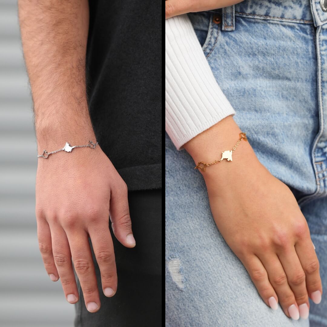 Unsere Landkarten Armbänder verleihen mit den drei Landkarten Anhängern dreifachen Charme und sind sowohl für Damen als auch Herren perfekt geeignet.