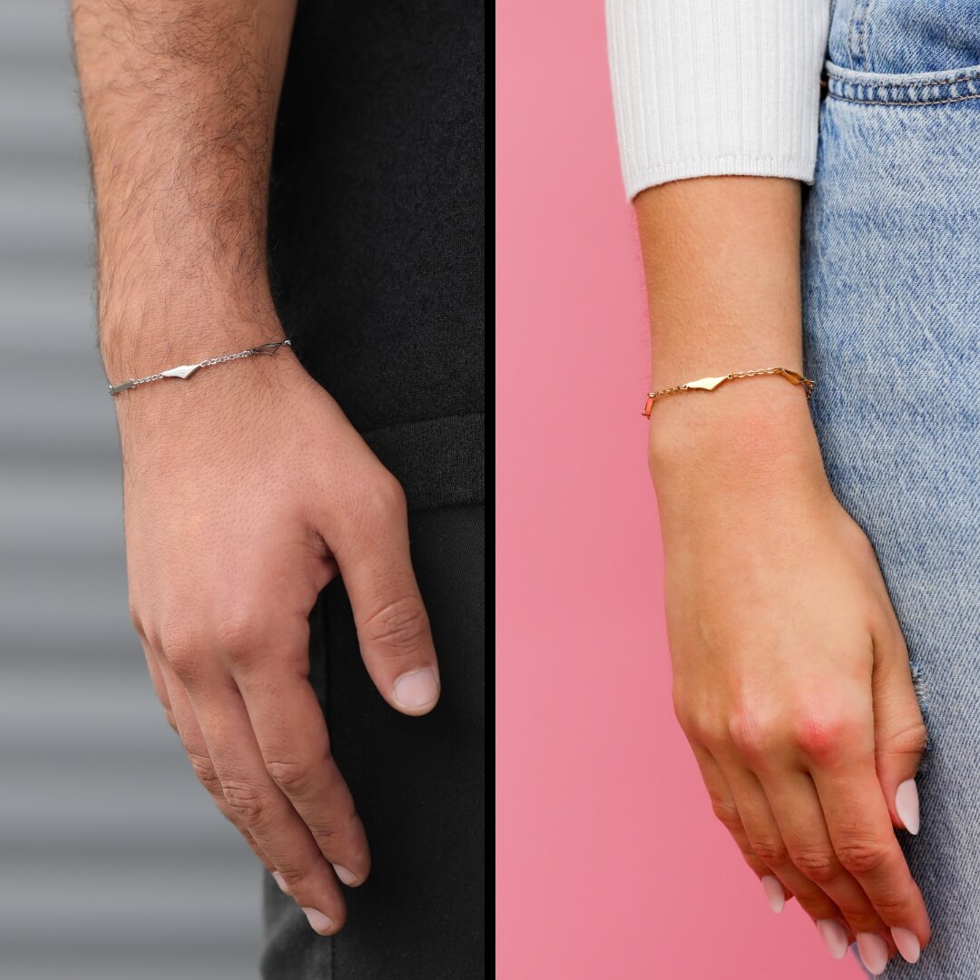 Explore the triple charm of our map bracelets, adorned with three meaningful pendants representing home, identity, and connection. Designed for both women and men